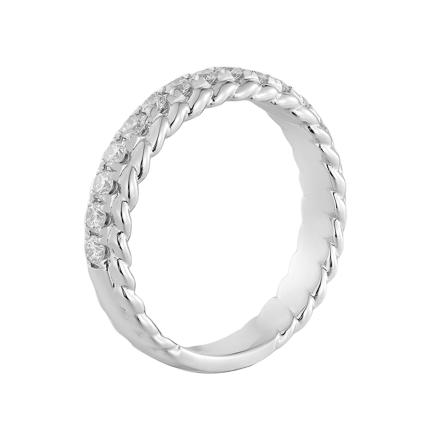 The design of this ring arm is inspired by twine. The center is set with a row of diamonds, and the left and right sides both have a row of twine shapes around the middle stone. Unique and elegant.